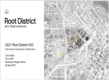A substantive presentation of redevelopment frameworks for the Minneapolis Farmer’s Market area, aspirationally being called “The Root District.” The three primary areas of focus are EQUITY, CREATIVITY, and CLIMATE.